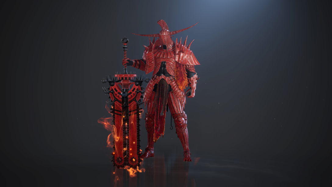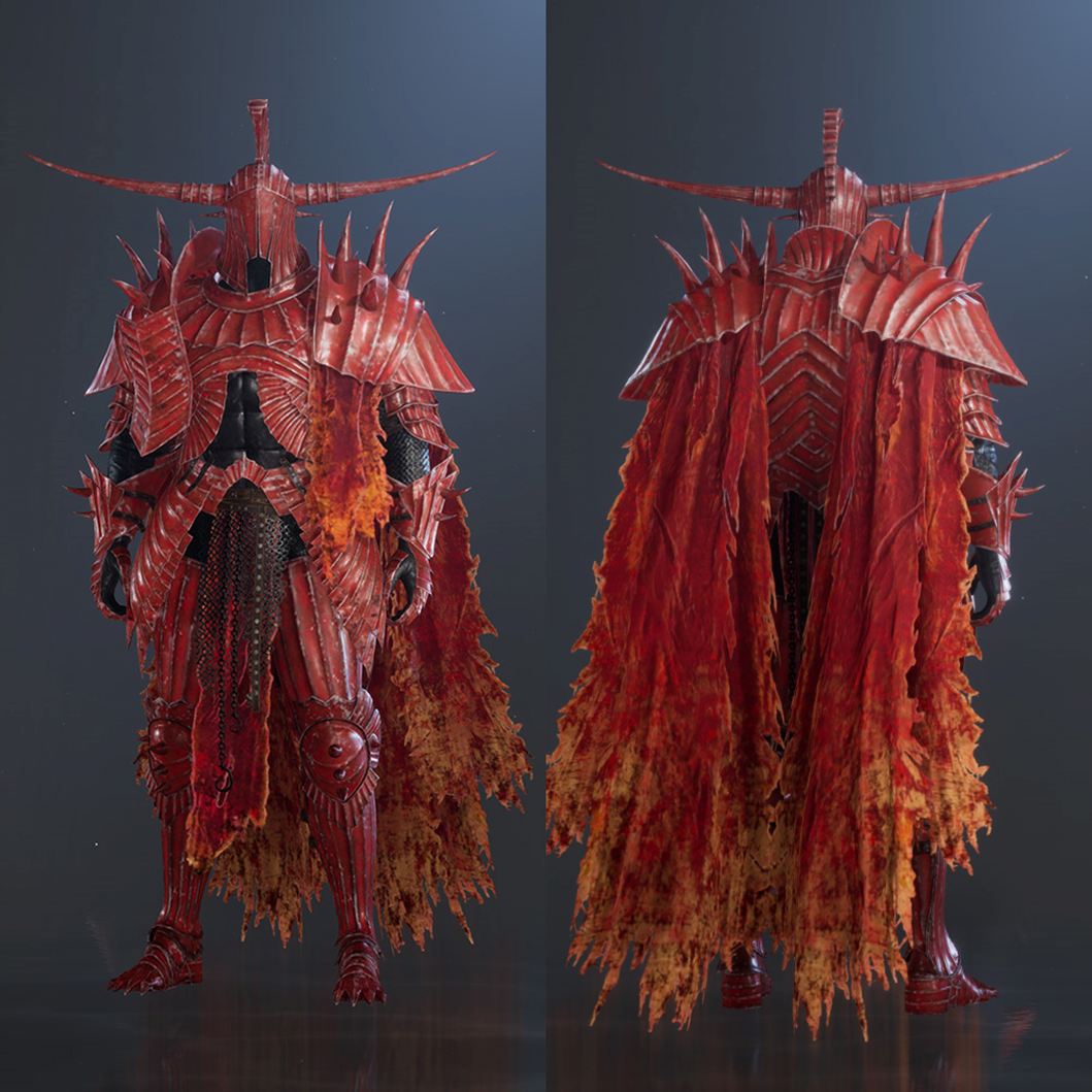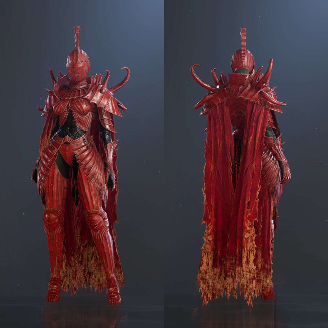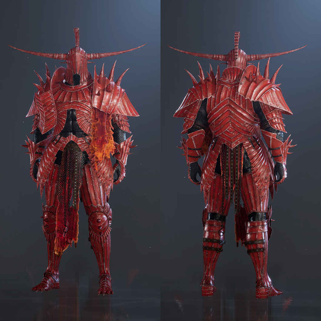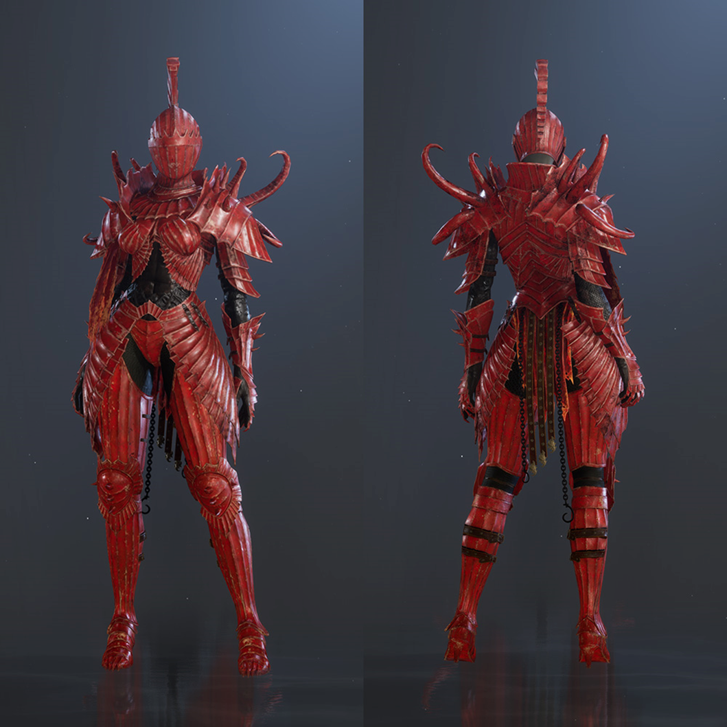 Get the Crimson Knight, the armour of a legendary knight cursed to burn forever, and the Crimson Thorn Weapon, the weapon of a legendary knight said to have cast the most cunning demons in the Demon Realm into Purgatory!