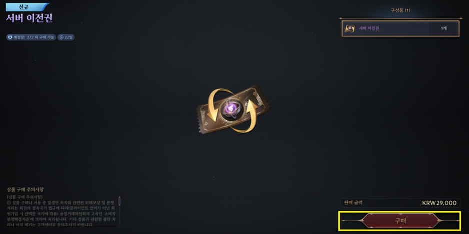 Server transfer ticket sales period and purchase restrictions