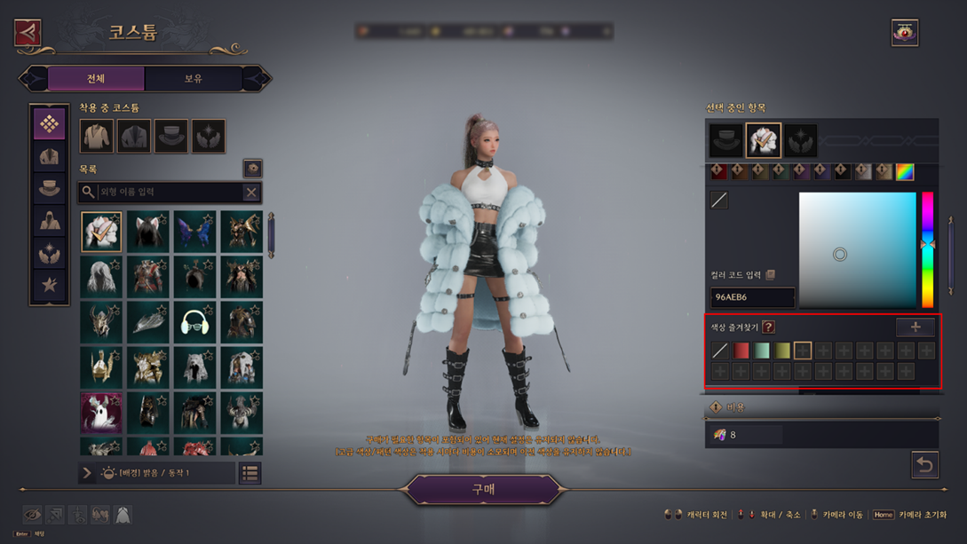 The Advanced Colour Favourites feature is a secondary means of easily selecting frequently used colours, which may require a colour change fee for final application to a costume or weapon appearance.